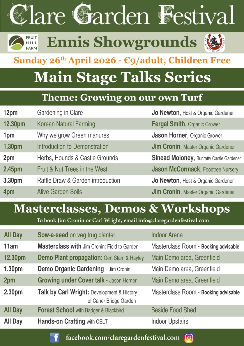Clare Garden Festival was founded in 2013 and its main aim still is to-date to bring Garden Expertise from the whole county and the whole country to Clare showcasing their experience in an accessible manner in the indoor arena of the festival as part of our Garden, Plant, Craft and Food fair.